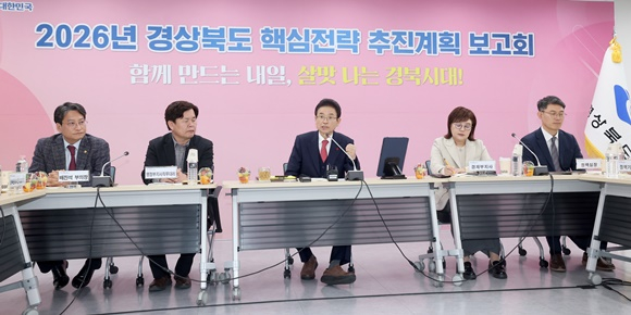 경상북도는 19일 동해안 현장(동부청사)에서 전 실국과 공공기관이 모두 참석한 가운데 ‘2026년 도정 핵심 전략 추진계획 보고회’를 열고 민생경제 살리기 특별대책, 5대 도정 방향과 중앙부처 업무 계획에 대응한 분야별 핵심 정책과제를 집중 점검했다.