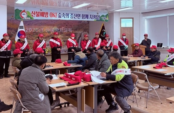김천시 증산면에서는 1월 21일 증산면 행정복지센터 2층 회의실에서 이장협의회, 산불 감시원, 의용소방대원 등 40여 명이 참석한 가운데 ‘2026년 산불방지 다짐대회 및 산불예방 교육’을 진행했다.