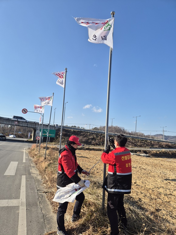 김천시 아포읍(읍장 이서정)에서는 최근 건조 특보와 강풍 특보가 이어짐에 따라 지난 21일 관내에 설치된 산불 조심 깃발에 대해 안전 점검을 진행하고 훼손된 깃발을 교체했다.