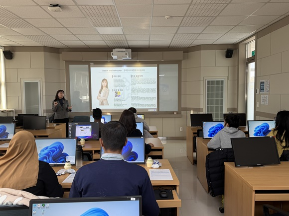 이번 프로그램은 지역혁신중심 대학지원체계(RISE) 사업의 일환으로, 외국인 유학생들이 한국 생활에서 겪는 언어와 정보 접근의 어려움을 해소하고 생성형 인공지능(AI)을 활용해 스스로 문제를 해결할 수 있는 실질적인 디지털 역량을 기르기 위해 마련됐다. 한국강사교육협회 윤석미 이사가 강사로 나서 생성형 AI(ChatGPT 등) 활용 실습 교육을 진행했으며, 교육내용은 △생활정보 검색 방법 △병원 접수 및 진료 의사소통 △은행 계좌 개설 대화 △아르바이트 지원 메시지 작성 △행정·학교 안내문 이해 및 번역 등 유학생들이 실제 생활에서 바로 활용할 수 있는 과제로 구성됐다. 학생들은 AI를 활용해 필요한 문장을 직접 작성하고 즉시 적용해보며 한국어 의사소통 능력과 생활 적응 자신감을 높였다.