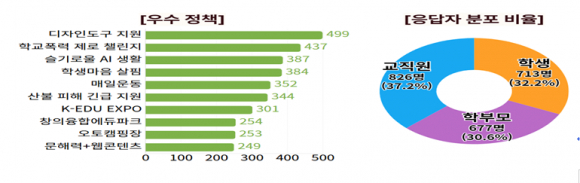 학생 713명, 학부모 677명, 교직원 826명 등 총 2,216명이 참여한 이번 조사는 단순한 인기투표를 넘어 경북교육 가족들이 현재 무엇을 가장 필요로 하고, 어떤 미래를 꿈꾸는지 보여주는 ‘현장의 생생한 보고서’다.