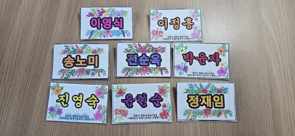 이어 진행된 ‘내 이름 명찰 만들기’ 프로그램에서는 각자의 이름을 직접 꾸미며 완성한 명찰을 목에 걸어보는 활동을 통해 자존감을 높였다. 어르신들은 “내 이름이 이렇게 예쁜 줄 몰랐다”, “서로 이름을 부르니 더 가까워진 것 같다”며 만족감을 드러냈다.