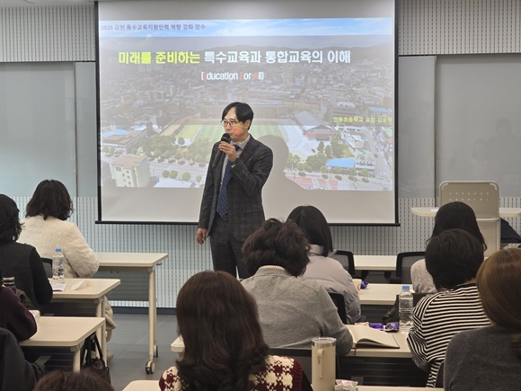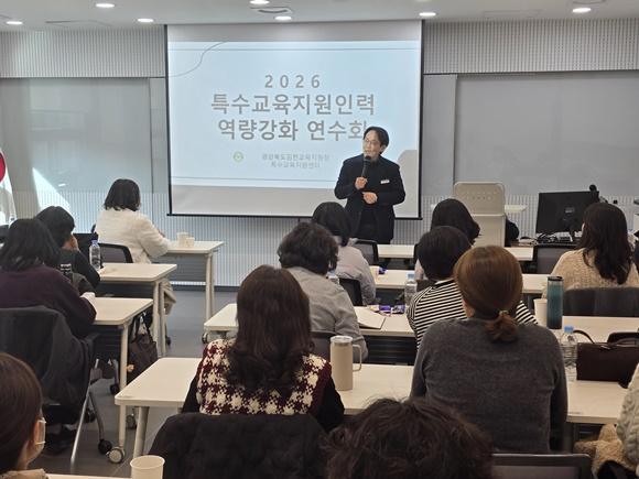 김천교육지원청(교육장 모태화)은 2026년 1월 26일(월), 관내 특수교육실무사 및 사회복무요원을 대상으로 「2026 특수교육지원인력 역량강화 연수」를 실시하였다.