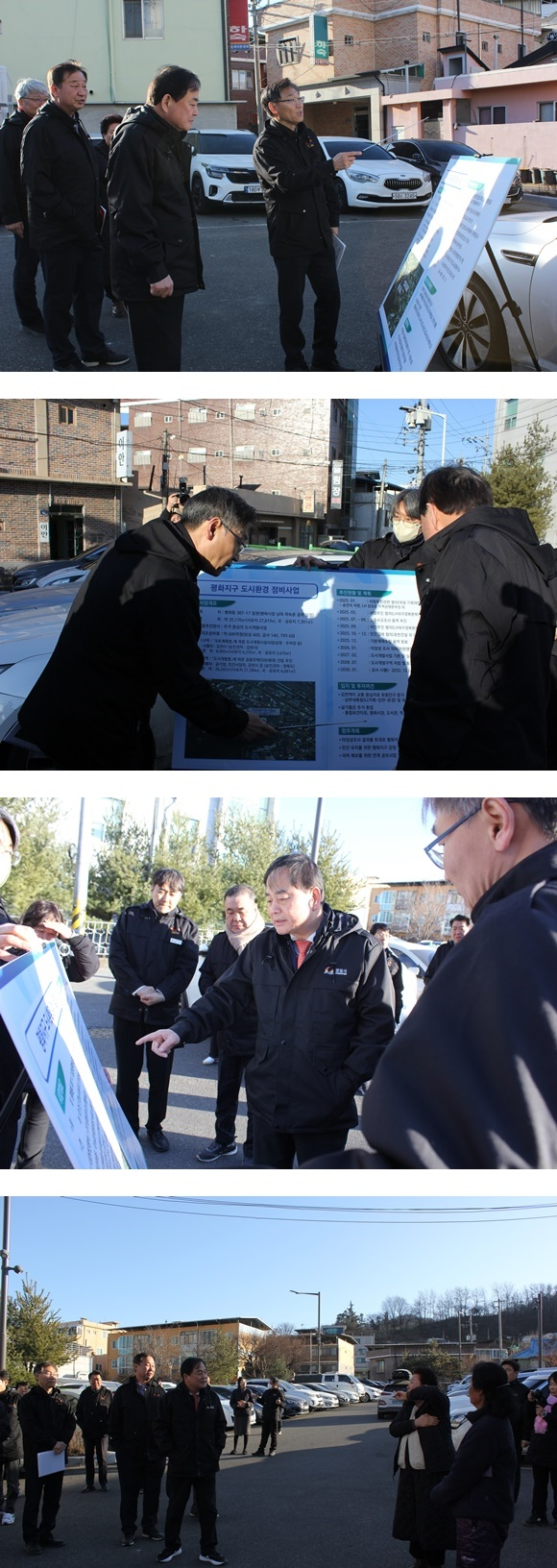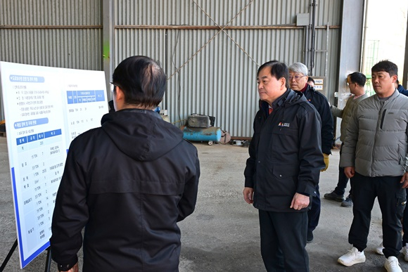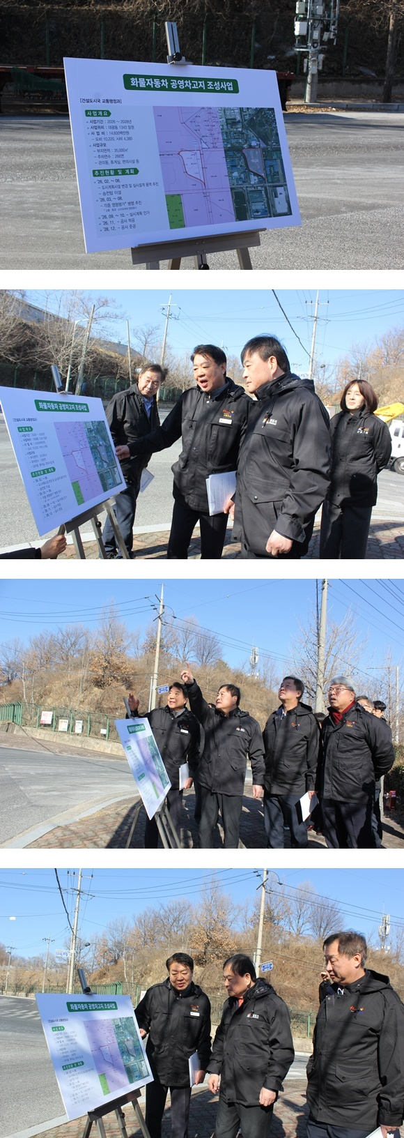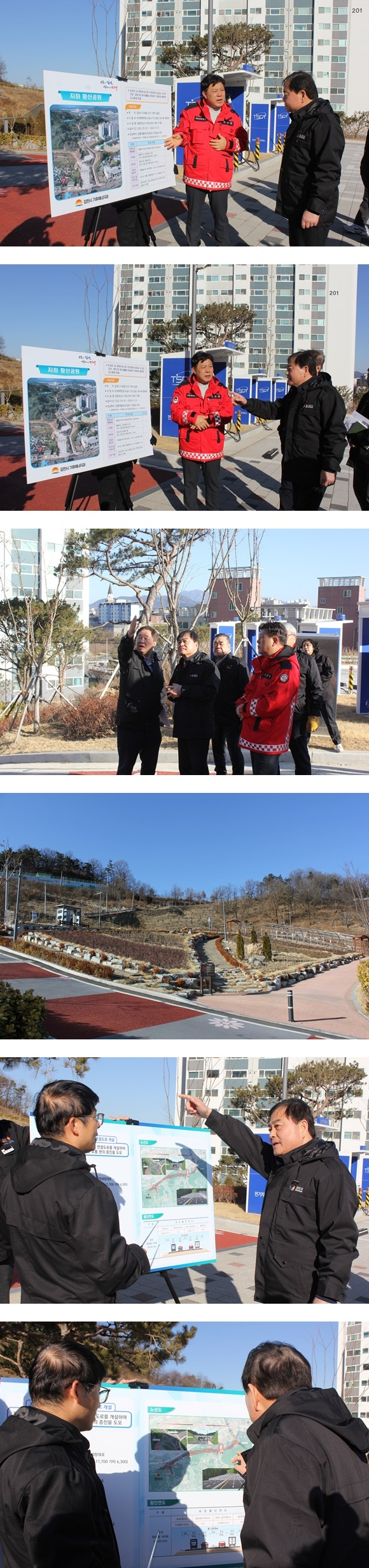 먼저 화물자동차 공영차고지 조성사업과 지좌 황산공원, 우회도로~호동마을 연결도로, 직지사천 파크골프장 조성사업을 둘러보았다.