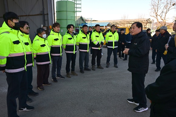 김천시는 지난 1월 28일 동절기 폭설과 도로결빙에 대비해 도로 안전 확보를 위한 제설 장비 및 자재 현장점검을 실시했다.