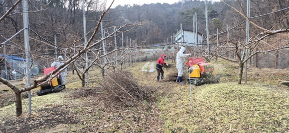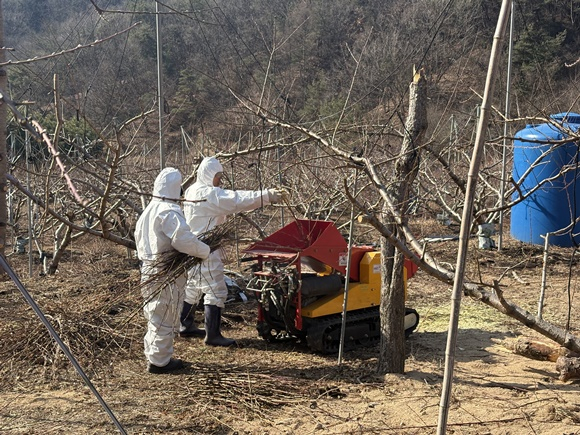 이번 영농부산물 파쇄는 파쇄 희망 농가를 신청받아 산불 감시원의 협조하에 진행됐다. 복숭아, 포도, 한라봉, 들깨, 고춧대 등 총 16 농가의 신청이 접수됐으며, 약 40,000㎡가량의 잔가지를 파쇄했다. 산불 감시원들은 방제복과 보안경 및 마스크 등의 안전 장비를 착용하고 산불 담당자의 입회하에 안전하게 파쇄 작업을 완료했다.