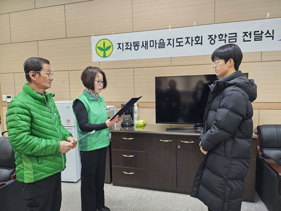 김천시 지좌동 새마을지도자회(협의회장 박주태, 부녀회장 황경숙)는 30일 지좌동 행정복지센터에서 관내 청소년들의 건전한 성장과 학업 장려를 위한 장학금 전달식을 개최했다.