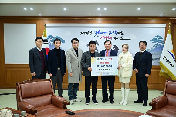 율곡동 새마을협의회는 3일 김천시청을 방문해 성금 200만 원을 기탁했으며, 율곡동 체육회도 100만 원을 함께 전달하며 지역사회 나눔 실천에 뜻을 함께했다. 이현수 새마을지도자협의회장과 김주미 새마을부녀회장은 “이번 성금이 어려운 이웃을 돕는 데 보탬이 되길 바란다. 앞으로도 지역 주민들과 함께하는 단체로서 봉사와 나눔을 통해 지역 발전에 이바지하겠다.”라고 말했다. 조정구 체육회장 또한 “회원들이 한마음으로 다져온 화합과 연대가 나눔으로 이어져 뜻깊게 생각하며, 이웃들에게 희망이 되길 바란다.”라고 밝혔다. 율곡동에서는 앞서 통장협의회와 자연보호협의회에서도 각각 100만 원씩 성금을 기탁한 바 있으며, 지역 내 여러 단체가 자발적으로 나눔 행렬에 동참하며 따뜻한 공동체 문화를 만들어가고 있다. 배낙호 김천시장은 “율곡동 단체들의 지속적인 관심과 나눔 실천에 깊은 감사의 말씀을 드린다. 기탁해 주신 성금은 도움이 필요한 이웃에게 소중히 쓰이도록 하겠다.”라고 말했다.