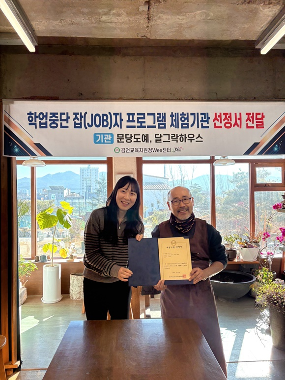 경상북도김천교육지원청(교육장 모태화) Wee센터는 2026년 2월 3일(화)에 문당도예, 달그락하우스를 방문하여 체험기관 선정서를 전달하는 시간을 가졌다.