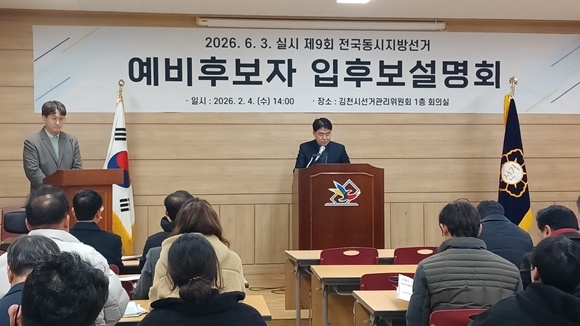 김천시선거관리위원회는 2월 4일 오후 2시부터 제9회 전국동시지방선거 예비후보자를 대상으로 입후보 설명회를 열고, 선거 절차와 주요 유의사항을 안내했다.