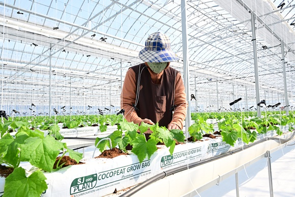 해당 농가는 국비 공모사업 지원을 포함해 총사업비 11억 원을 투입해 4,577㎡ 규모의 스마트팜 온실을 조성했으며, 보온시설, 내·외부 환기시설, 양액기 등 첨단 스마트팜 설비를 구축하여 오이를 재배하고 있다.