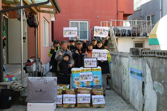 김천소방서(서장 송영환)는 2월 9일 14시경 설 명절을 맞아 김천시 모암동에 위치한 ‘반석 노인복지센터’와 조손가정을 방문해 위문품을 전달하며 따뜻한 나눔을 실천했다.