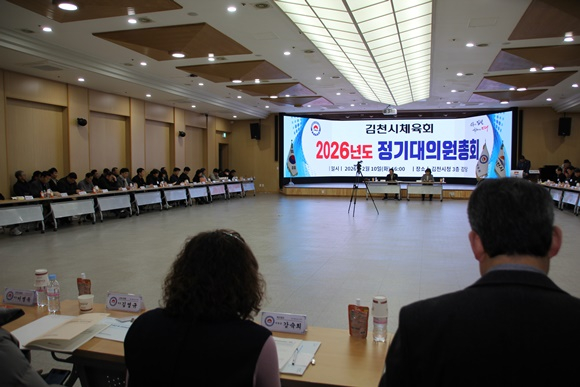 김천시체육회는 2월 10일 오후 4시, 김천시청 3층 강당에서 ‘2026년도 김천시체육회 정기대의원총회’를 열고 2025년도 사업실적 및 세입·세출 결산 승인과 2026년도 업무 추진계획 등을 심의·의결했다.