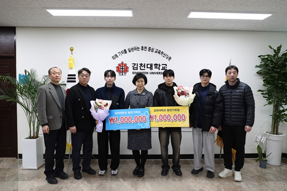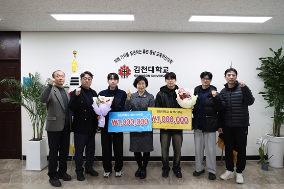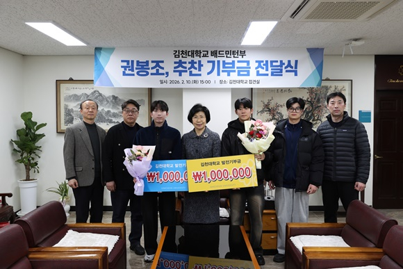 김천대학교(총장 윤옥현)는 배드민턴부 권봉조 선수와 추찬 선수가 대학 발전을 위해 각각 100만 원씩, 총 200만 원의 기부금을 전달했다고 밝혔다.