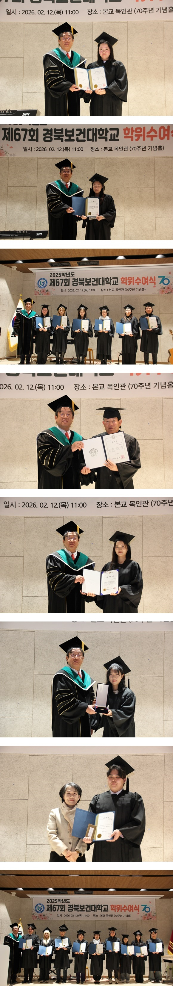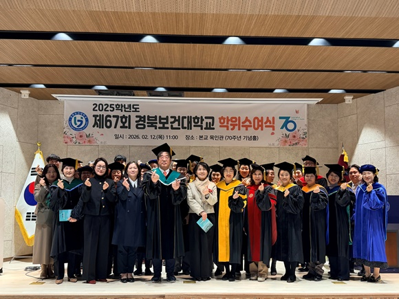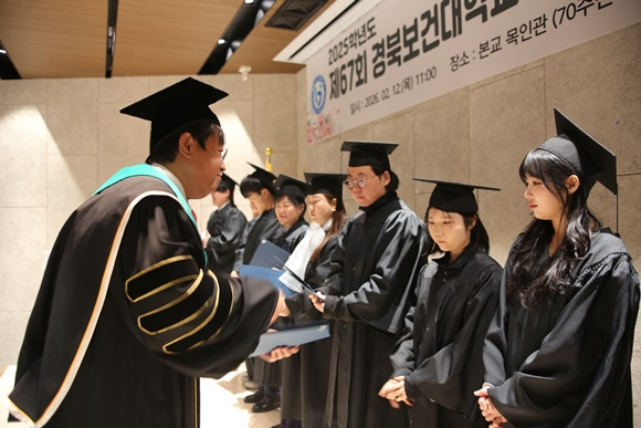 경북보건대학교(총장 이은직)는 2월 12일 교내 목인관 70주년기념홀에서 「제67회 경북보건대학교 학위수여식」을 개최했다.