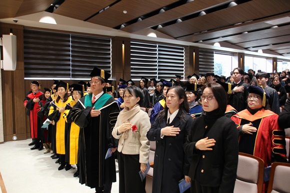 | 이번 제67회 학위수여식에는 이은직 총장을 비롯한 학내외 인사와 졸업생, 가족 및 친지들이 참석해 졸업생들의 새로운 출발을 함께 축하했다. 간호학과 등 6개 학과에서 4년제 학사 299명, 2/3년제 전문학사 111명 등 총 410명의 졸업생이 학위증을 수여받았다.