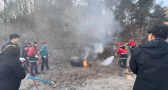 김천시 조마면(면장 김영백)은 설 명절을 앞두고 12일(목) 산불 위험이 적은 오전 10시, 조마면 강곡리 산5-1 인근에서 조마면 직원 일동과 산불 감시원 7명이 참석한 가운데 기계화 장비를 활용한 산불진화 훈련을 실시했다.