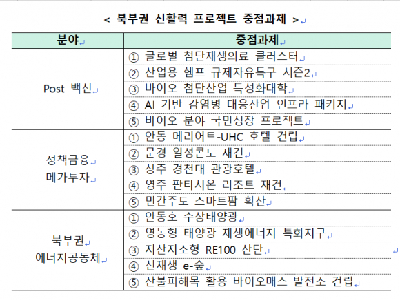 앞서 1월 29일 북부권 신활력 프로젝트 기획에 대한 브리핑이 있었다. 브리핑에는 산업 구조 전환을 담은 ‘Post 백신 프로젝트’, ‘민간 주도 스마트팜’, ‘에너지공동체 조성’에 대한 구상이 담겼고, 민간투자 확대를 위한 ‘정책금융 메가투자 프로젝트’도 포함됐다.