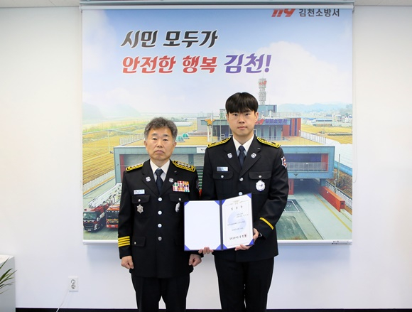 김천소방서(서장 송영환)는 2월 19일 오전, 본서 김천소방서장실에서 신임 소방공무원 임용장 수여식을 개최했다.