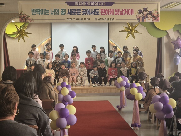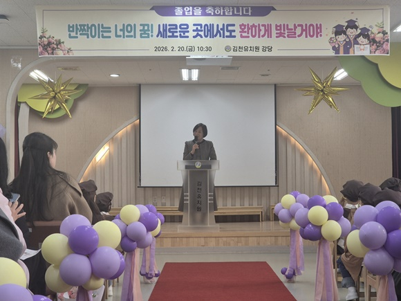 김천유치원(원장 정현선)은 2026년 2월 20일(금)에 햇살반 만5세 유아 25명의 마지막을 장식하는 제18회 졸업식을 실시하였다.