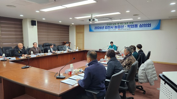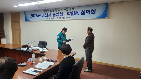 김천시는 2월 24일 농업기술센터 2층 세미나실에서 2026년 농촌진흥분야 국·도비 및 자체사업 지원 대상자 선정을 위한 농업산학협동심의회를 개최했다.