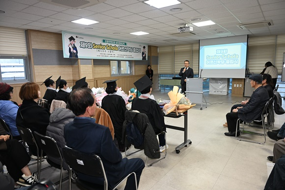 이날 어르신 학당 졸업식에는 졸업생과 재학생, 관계자 40명이 참석했으며 5명의 졸업생이 학력인정서를 수여받고 학력우수자에 대한 표창장을 수여 받았다.