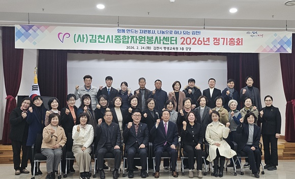 (사)김천시종합자원봉사센터(센터장 김경희)는 지난 24일(화), 김천시평생교육원 3층 강당에서 2026년 정기총회를 개최했다.