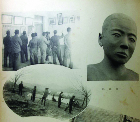 송병돈 교사가 지도한 김천고보 서화부 활동 모습(1937). 제7회 김천고보 앨범에서
