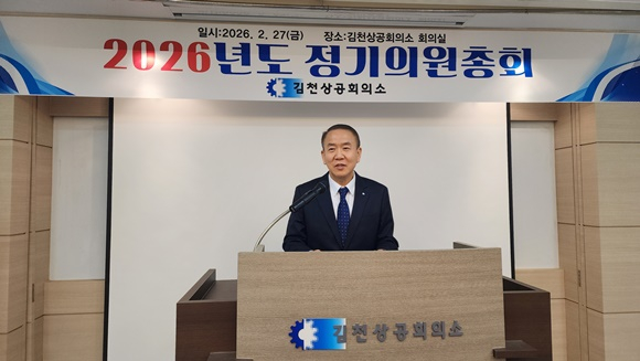 김천상공회의소(회장 안용우)는 27일 오전 11시 본회의소 2층 중회의실에서 2026년도 정기의원 총회를 개최했다.