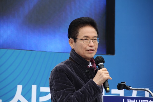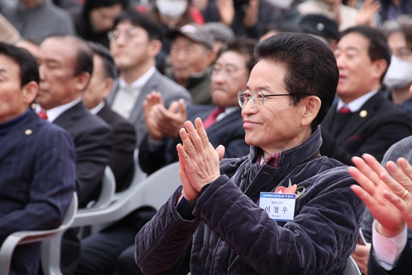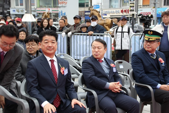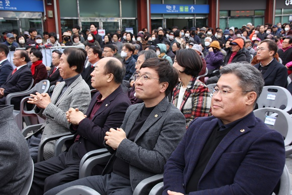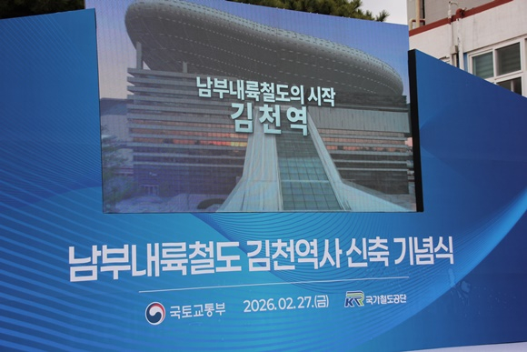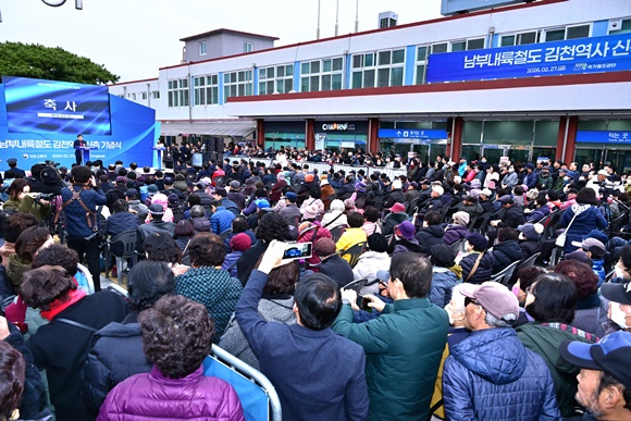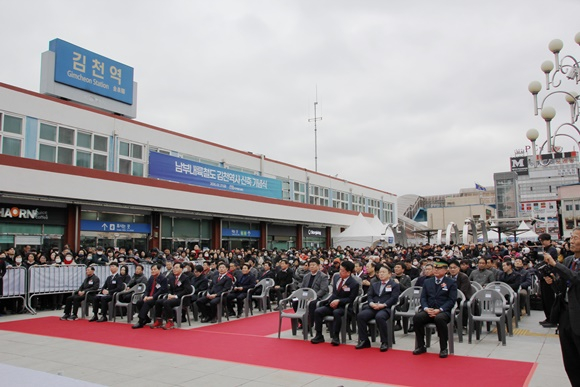 김천시(시장 배낙호)는 2월 27일 국가철도공단 주최로 김천역 광장에서 「남부내륙철도 김천역사 신축 기념식」을 개최했다.