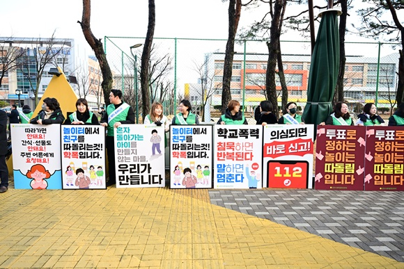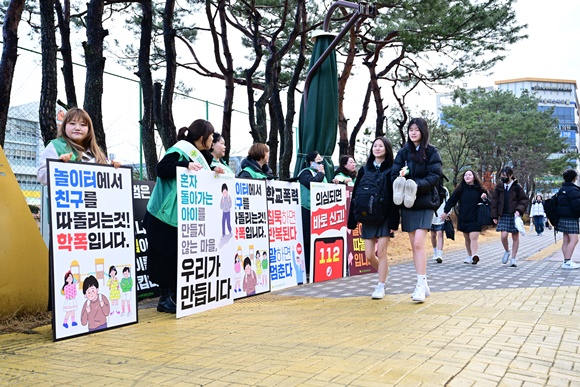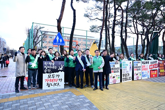 김천시청년새마을연대(회장 이동협)는 3일 2026년 입학식을 맞아, 율곡초등학교 및 율곡중학교 앞에서 학교폭력 근절 합동 캠페인을 전개했다.
