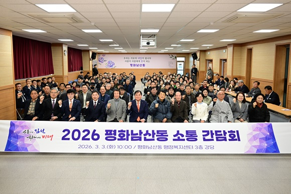 김천시는 3월 3일 오전 10시 평화남산동 3층 회의실에서 ‘2026 읍면동 소통 간담회’를 열고 주민들과 직접 마주 앉아 지역 현안을 청취했다.