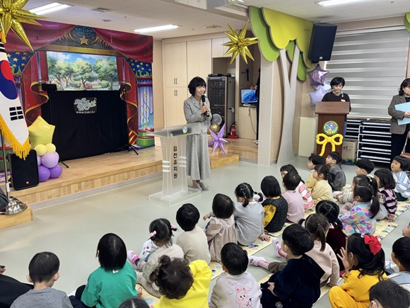 또 입학식을 축하하는 인형극 공연을 관람하며 유치원 생활에 대한 긴장을 완화하고 긍정적인 첫인상을 형성하는 뜻깊은 시간을 가졌다. 웃음과 박수 속에 밝은 표정으로 공연을 관람한 열매반 이모 유아는 “인형극 너무 재밌었어요. 어서 친구들, 선생님과 즐겁게 놀고 싶어요.”라며 유치원 생활에 대한 기대감을 전했다. 한편 김천유치원 원장은 취임 후 첫 입학식을 마치며 “2026년도 첫날, 아이들의 환한 미소와 빛나는 모습을 볼 수 있어 행복했다. 새로운 출발을 하는 모든 유아가 김천유치원에서 한 해 동안 안전하게 놀이하고 즐겁게 배우며 성장할 수 있도록 노력하겠다.”고 밝혔다.
