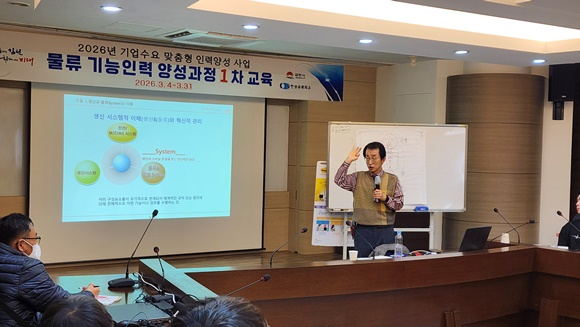 김천상공회의소(회장 안용우)는 4일 김천상공회의소 2층 중회의실 ‘기업수요 맞춤형 인력양성사업’의 일환인 ‘물류 기능인력 양성과정’의 1차 교육을 시작했다.