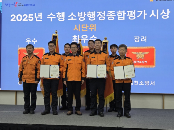 김천소방서(서장 송영환)는 경상북도가 실시한 ‘2025년 소방행정종합평가’에서 우수한 성과를 거두며 시 단위 소방서 부문 장려상을 수상했다고 밝혔다.