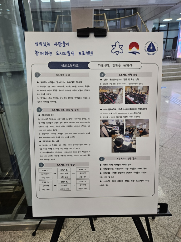 이번 프로젝트는 김천시 도시재생사업을 연구하고, 학생들이 직접 구상한 도시재생 아이디어를 결과물로 만들어 내는 지역 봉사 프로그램으로, 성의고등학교 1학년 학생 112명이 20개 팀을 구성해 약 6개월 동안 참여했다. 학생들은 김천시 균형개발과의 도시재생사업 전반에 대한 설명을 시작으로 현지 조사와 자료 분석을 진행했으며, 수집된 자료를 바탕으로 아이디어 제시와 토론을 거쳐 팀별 결과물을 도출했다.