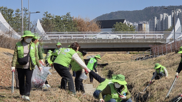 김천시(시장 배낙호)는 다가 오는 3월 22일 「세계 물의 날」을 기념하여 3월 19일 율곡동 석정천 일대에서 「쓰담쓰담 푸른 석정천 가꾸기」 행사를 개최했다. 행사명 ‘쓰담쓰담’은 ‘토닥이다’와 ‘쓰레기담기’ 활동을 압축한 표현이다.