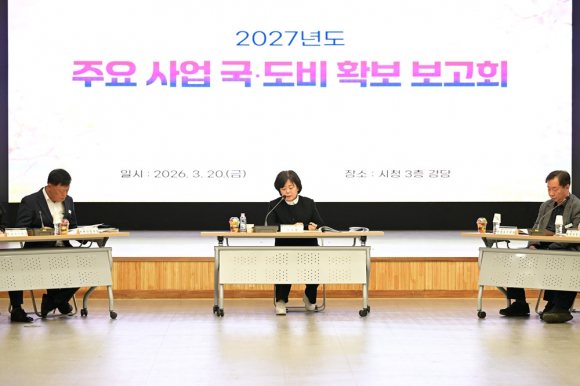 김천시는 주요사업의 원활한 추진을 위한 국·도비 확보에 총력을 기울이고 있다. 시는 3월 20일(금) 시청 3층 강당에서 조현애 부시장 주재로 ‘2027년도 주요사업 국·도비 확보 보고회’를 개최했다고 밝혔다. 이번 보고회는 정부예산 편성 일정에 선제적으로 대응하고, 지역 현안사업의 안정적인 재원 확보 전략을 논의하기 위해 마련됐다.
