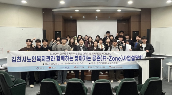 이번 설명회는 경상북도가 직면한 인구 감소와 고령화 문제에 대응하고, 청년과 노인이 지역사회 내에서 상호 협력하는 지속가능한 공동체 모델을 구축하기 위해 마련됐다. 특히 김천시노인복지관이 추진하는 노인·청년 세대공존형 복합모델 구축 프로젝트 ‘사계공존’과 김천대학교 RISE사업이 연계되어, 지역 기반 세대공존 플랫폼 조성의 필요성과 추진 방향을 공유하는 자리로 진행됐다. 설명회에서는 김천대학교 재학생들을 대상으로 사업의 추진 배경과 필요성, 주요 운영 방향, 참여 방법 등을 안내했으며, 사업 안내자료 배포와 함께 참여자 모집도 함께 이뤄졌다. 기존 세대 관련 프로그램이 노인의 적응이나 인식 개선에 초점을 두었다면, 이번 사업은 노인과 청년을 지역공동체를 함께 이끄는 동등한 참여 주체로 바라본다는 점에서 의미를 더했다. 김천대학교는 RISE사업을 통해 지역의 인구 구조 변화에 선제적으로 대응하고, 보건·복지·보육의 통합적 접근을 바탕으로 지역혁신 체계를 구축하고 있다. 이번 설명회 또한 대학의 청년 자원과 복지관의 현장 경험을 연계해 실질적인 세대공존 모델을 마련하고, 지역사회 활성화와 사회적 가치 창출로 확장해 나가기 위한 출발점으로 평가된다. 방현수 김천대학교 RISE사업단장은 “경상북도의 인구 감소와 고령화는 특정 세대만의 문제가 아니라 지역사회 전체가 함께 해결해야 할 공동의 과제”라며, “김천대학교는 지역과 대학이 함께 성장하는 RISE사업을 기반으로 청년과 노인이 공존하고 협력할 수 있는 지역혁신 모델을 지속적으로 확대해 나가겠다”고 밝혔다. 김천대학교 토탈케어센터 김동훈 책임교수는 “이번 사업설명회는 학생들이 지역사회 문제를 직접 이해하고 세대 간 공존의 가치와 중요성을 인식하는 뜻깊은 계기가 됐다”며, “앞으로도 김천시노인복지관과의 긴밀한 협력을 통해 학생들이 지역 안에서 실천적 경험을 쌓고 의미 있는 역할을 수행할 수 있도록 적극 지원하겠다”고 말했다. 한편, 김천대학교 토탈케어센터와 김천시노인복지관은 앞으로도 청년과 노인이 함께 참여하고 협력할 수 있는 다양한 프로그램을 통해 세대공존 문화 확산과 지역공동체 활성화에 기여할 계획이다. 문의처 김천대학교 RISE사업단 (사회적 가치 실현) 054-420-4413