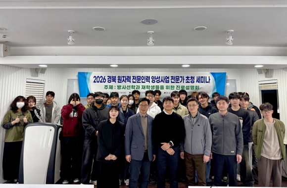 김천대학교(총장 윤옥현) 방사선학과(학과장 김형균)는 지난 3월 24일, 제1보건과학관 세미나실에서 ‘2026년도 경상북도 원자력 전문인력 양성사업 설명회 및 특강’을 성황리에 개최했다고 밝혔다. 이번 설명회는 2024년부터 시작된 해당 사업이 올해로 3년째 지속되고 있다는 점에서 더욱 의미를 더했다.