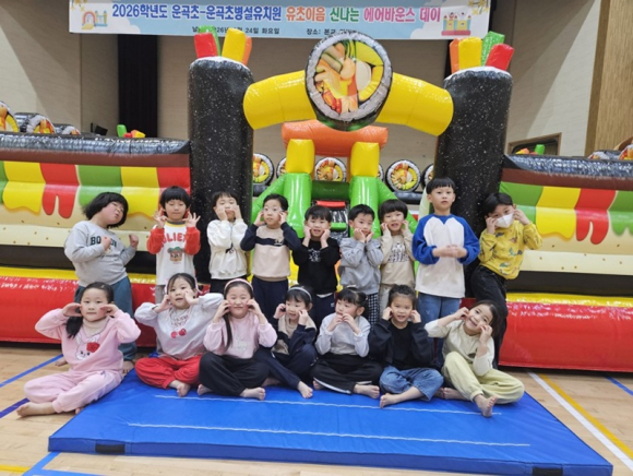 운곡초등학교병설유치원(원장 정용경)은 3월 24일 학교 강당에서 유치원 유아와 초등학교 1학년이 함께하는 ‘유·초이음 에어바운스 데이’를 운영하였다.