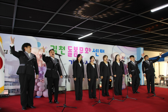 개관식은 김천시립합창단의 식전 공연을 시작으로 국민의례, 내빈소개, 경과 보고, 기념사와 축사, 테이프 커팅 및 시설 관람 순으로 진행됐다.