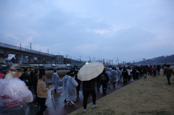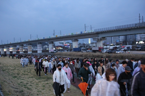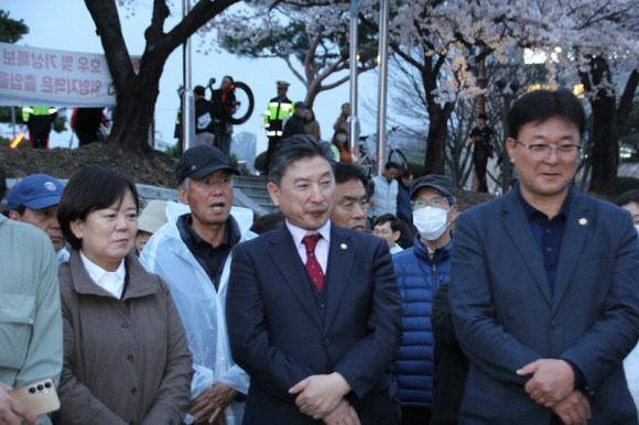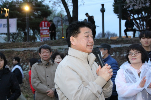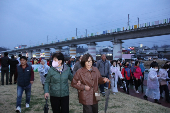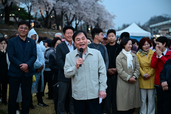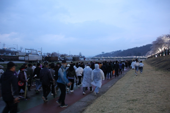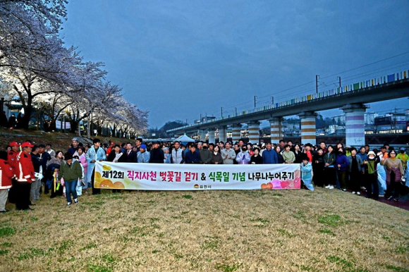 김천시는 4월 1일 저녁, 조각공원 앞 둔치에서 시민 2,000여 명이 참여한 가운데 ‘제12회 직지사천 벚꽃길 걷기 및 식목일 기념 나무 나누어주기 행사’를 성황리에 개최했다고 밝혔다.