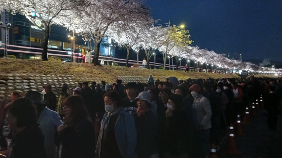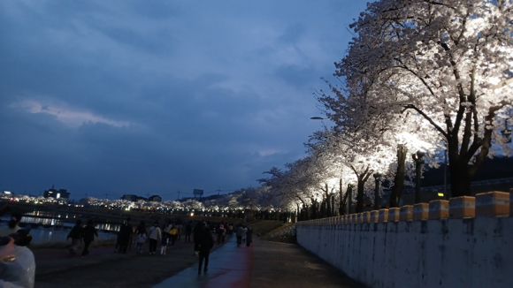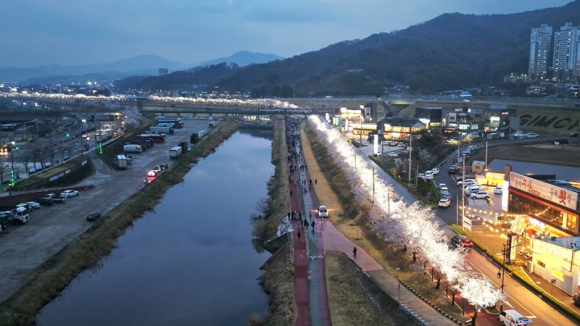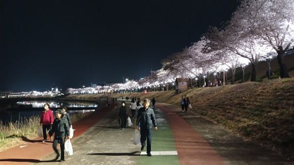 행사는 저녁 6시 보건소에서 운영하는 건강 증진 홍보 부스 설치로 시민들의 큰 호응을 얻었으며, 이어 저녁 7시 직지사천을 수놓는 경관조명 점등식이 시작되어 시민들은 환하게 불을 밝힌 벚꽃 터널 아래를 가족, 친구, 연인과 함께 걸으며 봄밤의 낭만을 즐겼다.