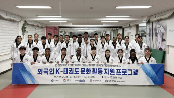 특히 단순한 체육 활동을 넘어 태권도를 매개로 한 문화교류 활동과 참여형 체험 프로그램이 함께 운영되어, 외국인 유학생들이 한국 문화를 보다 깊이 이해하고 상호 교류를 확대할 수 있도록 기획되었다. 아울러 프로그램 종료 시에는 참여자들의 성과를 공유하는 발표회와 문화교류 행사가 마련되어, 학습 성과를 확인하고 다양한 국적의 학생들이 함께 어우러지는 소통의 장이 될 것으로 기대된다. 김천대학교 RISE사업단 토탈케어센터 과제책임자 김동훈교수(물리치료학과)는 “이번 프로그램을 통해 외국인 유학생들이 한국 전통문화에 대한 이해를 높이고, 건강한 신체 활동과 더불어 유학생 간 교류 활성화에도 긍정적인 효과가 있을 것으로 기대한다”고 밝혔다.