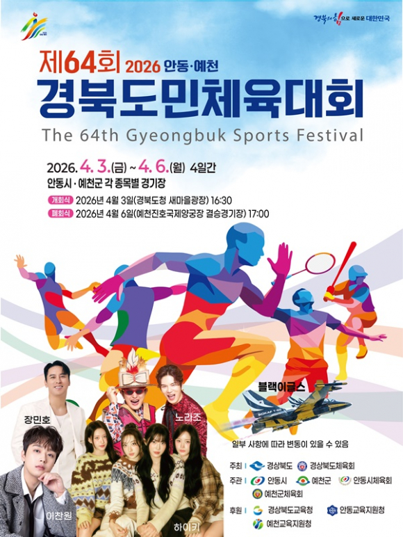 특히 이번 체전은 도민체전 사상 최초로 안동시와 예천군이 공동 개최해 시·군 간의 경계를 넘어선 화합과 상생의 의미를 더했다. 선수들은 시부 30개, 군부 16개 종목에서 각 지역의 명예를 걸고 선의의 경쟁을 펼친다. 안동시와 예천군이 힘을 모아 준비한 만큼 북부권 거점 도시 간 상생 협력의 새로운 본보기를 보여줄 것으로 전망된다.