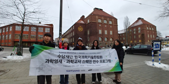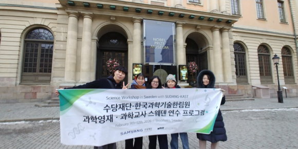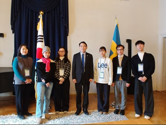 김천여자고등학교의 2학년 김혜인 학생과 과학담당 김재민 선생님은 2월 8일(일)부터 14일(토)까지 노벨상의 본고향인 스웨덴의 스톡홀름 지역에서 사제동행 과학연수에 참가하였다. 이번 연수는 한국과학기술한림원에서 주관한「2025년도 청소년 과학영재 사사」최우수 멘토-멘티에게 부여된 특전으로, 두 사람은 스웨덴의 다양한 시설을 탐방하면서, 과학적 시야와 사고의 폭을 넓혔다.