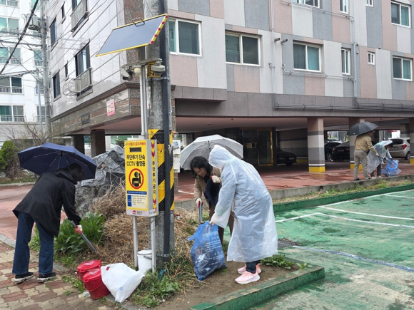 새마을협의회 회원 20여 명은 비가 내리는 궂은 날씨에도 불구하고, 책임 구간인 신음동 ‘온천니아’에서 ‘김천상공회의소’까지 이어지는 구간을 꼼꼼히 살피며 내 집 앞마당을 돌보듯 정성 어린 손길을 보탰다. 특히 유동 인구가 많은 원룸 밀집 지역과 이면도로를 중심으로 빗물에 젖어 뭉친 낙엽과 방치된 쓰레기를 정리하고, 보행에 불편을 주는 장애물들을 정비하며 주민들에게 봄꽃처럼 환하고 쾌적한 보행 환경을 선사했다.