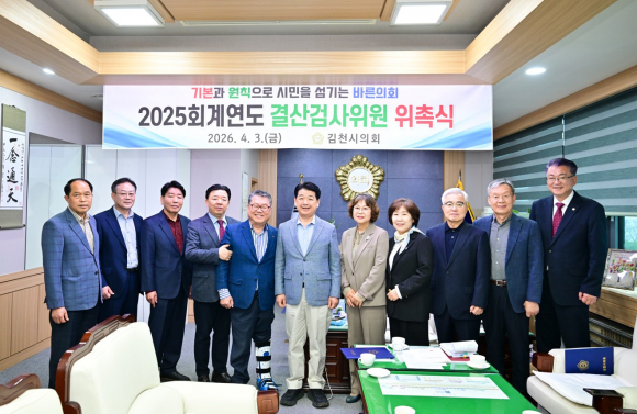 결산검사는 4월 3일부터 22일까지 20일간 실시되며, 위원들은 김천시 2025회계연도 세입‧세출을 비롯해 기금, 채권·채무의 결산 등 재정 전반에 대한 예산 집행의 적정성과 재정 운영의 효율성·합리성 등을 종합적으로 검토한 뒤, 문제점 및 개선사항을 담은 검사의견서를 작성해 시장에게 제출할 예정이다. 나영민 의장은 “결산검사는 재정 운영 전반을 점검하는 중요한 과정”이라며 “시민의 세금이 어떤 성과로 이어졌는지까지 세밀히 살펴보고, 미흡한 부분은 개선 방향을 명확히 제시해 주시길 바란다”고 당부했다. 결산검사 대표위원으로 선임된 윤영수 의원은“이번 결산검사를 통해 예산 집행 전반과 반복된 관행을 점검하겠다”며 “재정 운영의 투명성과 책임성 강화를 위한 개선 방안 도출에 집중하겠다”고 말했다.