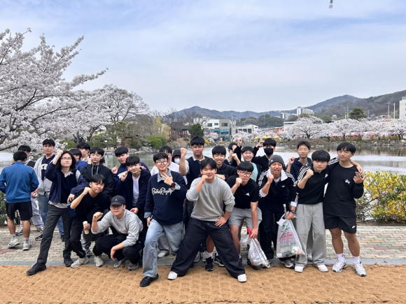 김천중앙중학교(교장 정하경)에서는 4월 3일(금) 오후 1시 20분부터 연화지 및 강변공원 벚꽃길에서는 ‘2026년 몸튼맘튼 벚꽃길 걷기 행사’를 실시하였다. 이번 행사는 플로킹 행사, ‘우정사진 콘테스트’등을 통해 몸과 마음을 튼튼히 하고, 우정을 통한 학교폭력 예방을 위한 목적으로 이루어졌다.